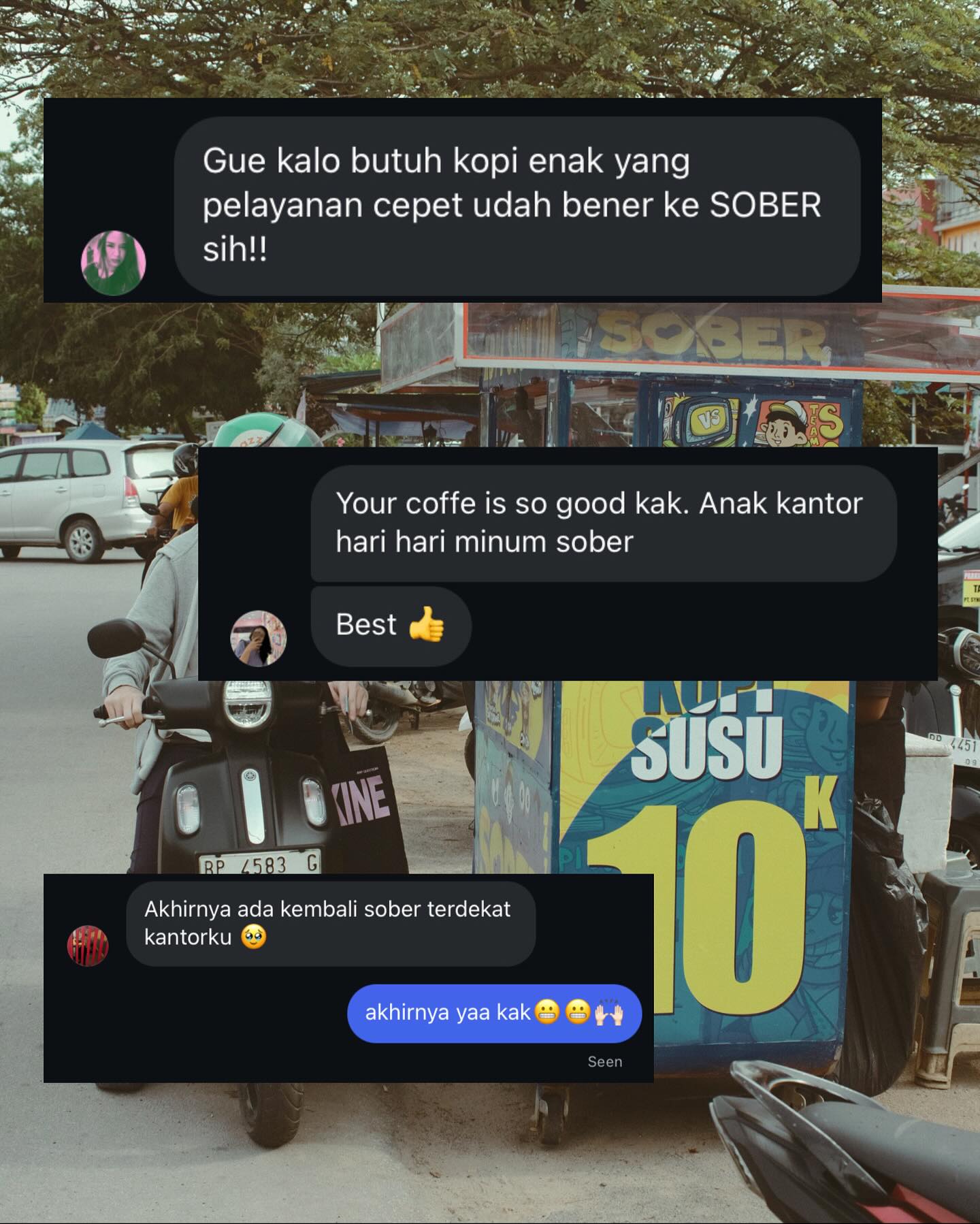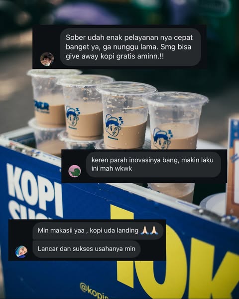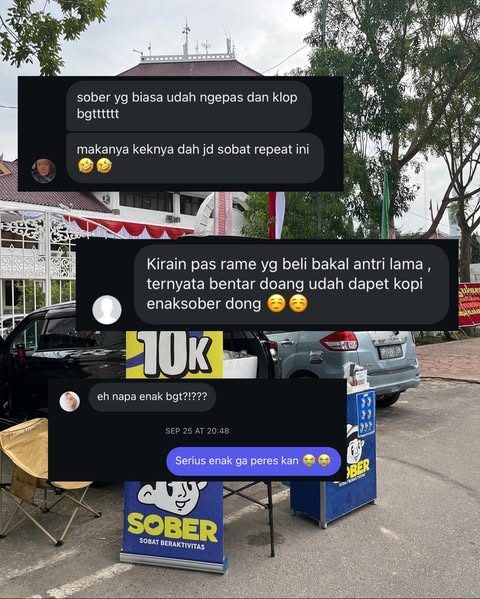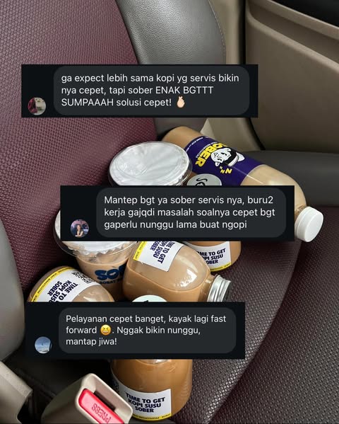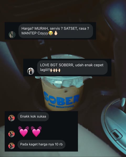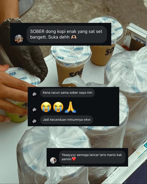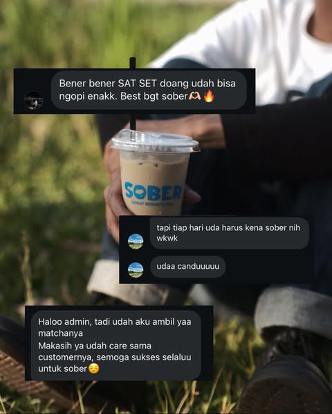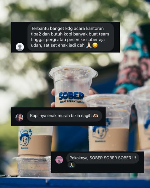 Dengan rasa yang konsisten dan harga yang ramah, kopi kita bikin suasana makin cair, ngobrol makin ngalir, dan acara jadi lebih hidup. Jadi, apapun acaranya, jangan lupa sediain Sober biar semua orang bisa ngerasain vibe yang sama.