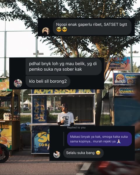 Buat kita, Jumat bukan cuma akhir dari rutinitas seminggu, tapi juga momen buat berbagi. Itu kenapa setiap Jumat, Sober siap traktir segelas kopi susu manis—gratis, tanpa syarat. Cukup datang ke stand kita, rasain vibes serunya, dan nikmatin kopi susu yang udah jadi favorit banyak orang.